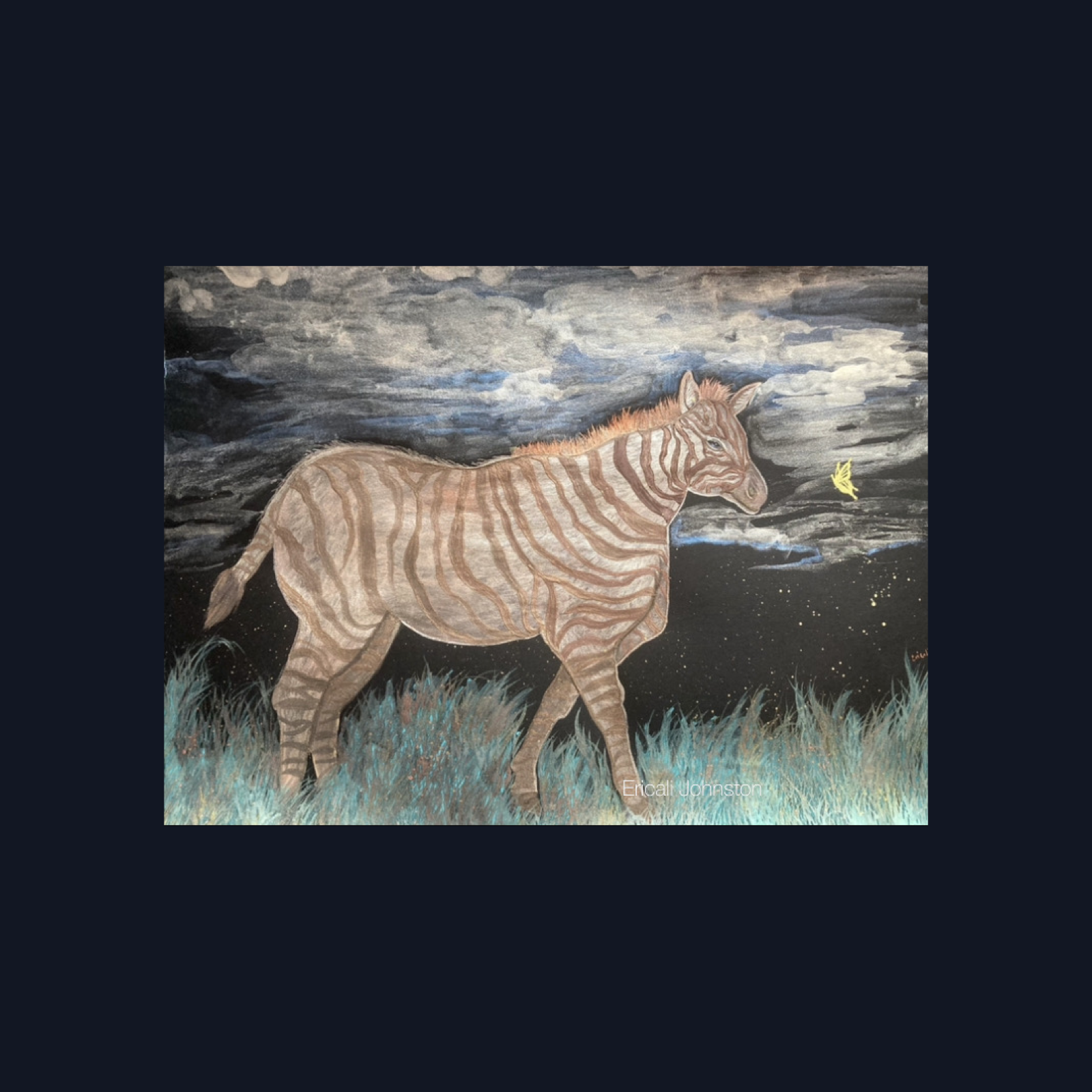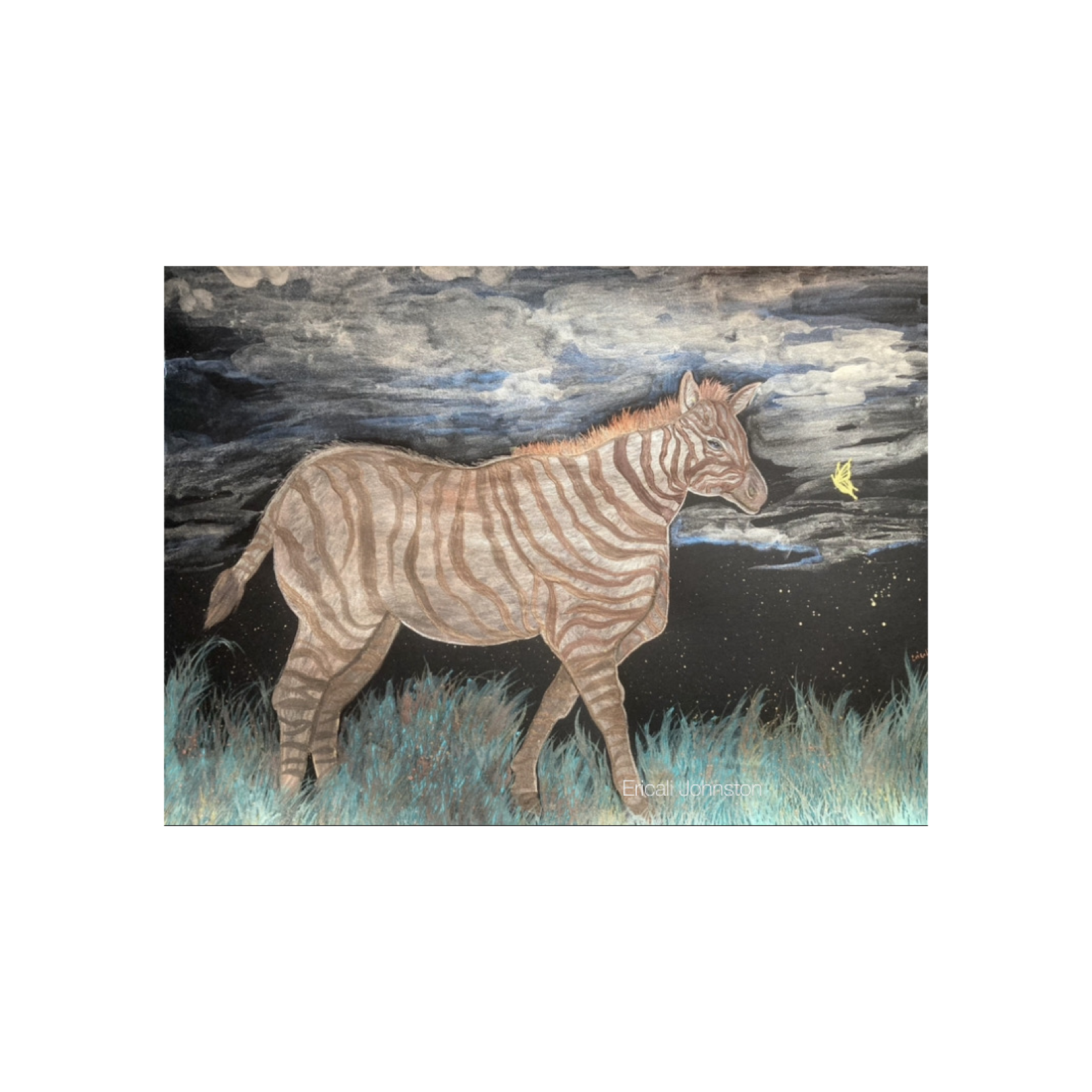 Golden Zebra Pearlescent Watercolor Painting 9x12